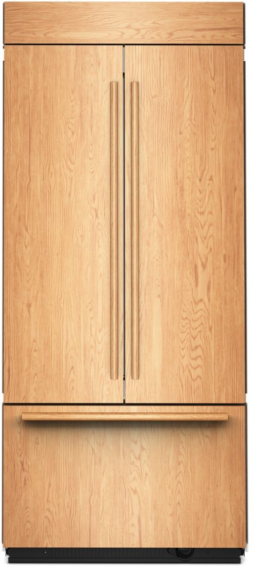 allows you to install custom front panels and handles over the refrigerator doors to create a seamless look with kitchen cabinetry. Panels and handles not included.